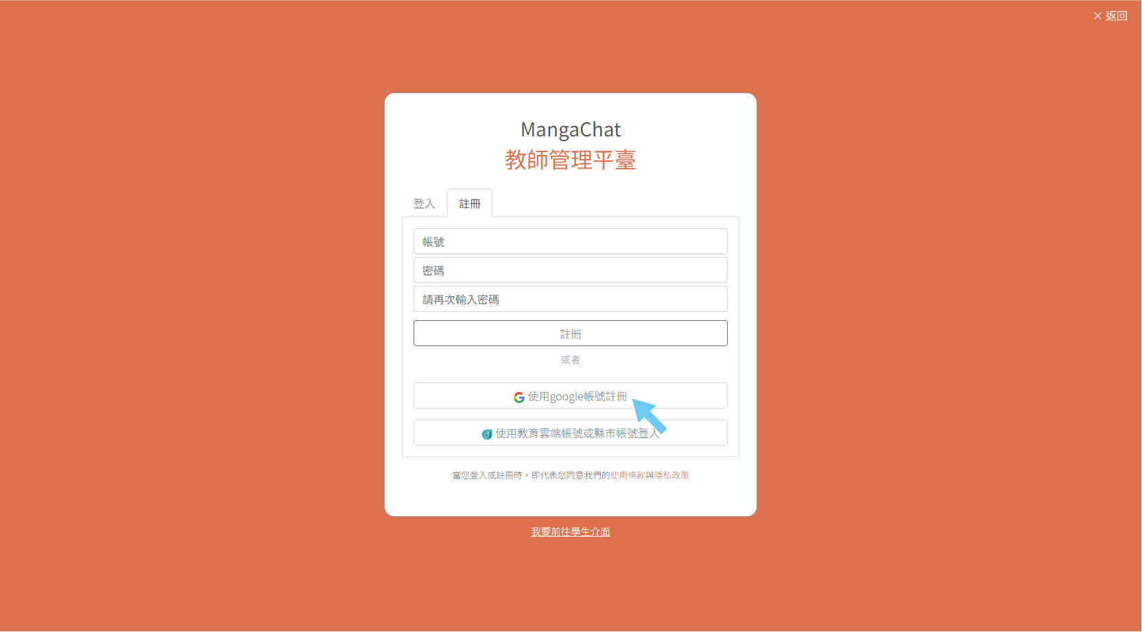前往「MangaChat教師管理平臺」（網址為<https://ws.mangachat.co>）