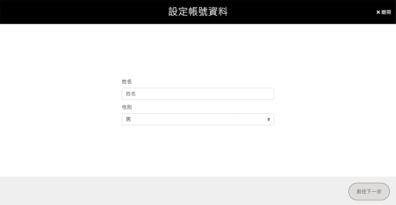 <figure><img src="https://845691862-files.gitbook.io/~/files/v0/b/gitbook-x-prod.appspot.com/o/spaces%2Fa7uaO10LjrLx2oBx1W9b%2Fuploads%2FFaXD1mlLJErqMDjKmXxe%2Fimage.png?alt=media&#x26;token=dfe6a83e-3144-4b72-92e1-e8be66d41ef1" alt=""><figcaption><p>首次登入需依照系統指引填寫基本設定</p></figcaption></figure>